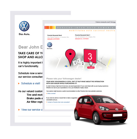Am creat o serie de mesaje automate trimise cumparatorilor de noi masini, mesajele fiind diferentiate în functie de ciclul de viata al vehiculelor achizitionat.